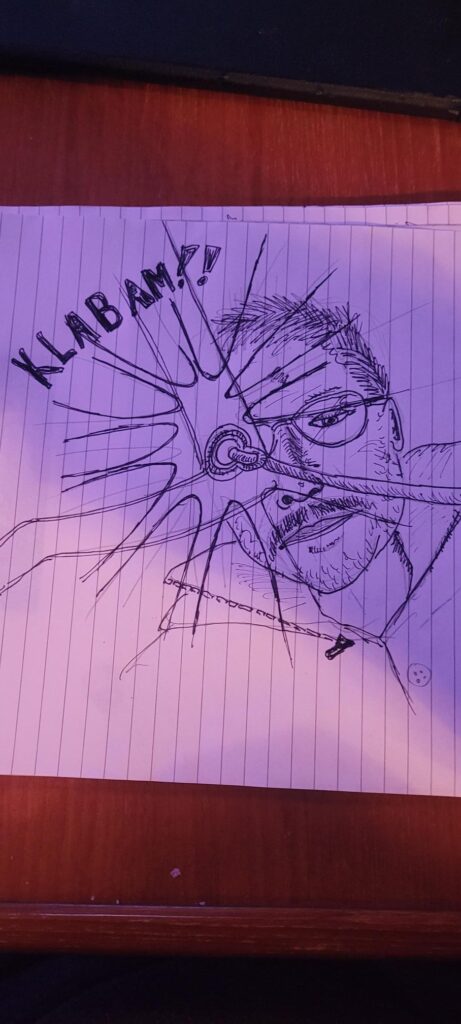 De nieuwe brandstofpomp arriveert pas maandag. Bovendien heb ik nog veel last van mijn hoofd. Het houdt me ook nog bezig, merk ik. Ik probeer het therapeutisch van me af te tekenen. Maar het lukt me niet goed om de herhaalde dreunen tegen mijn hoofd weer te geven. Onder een poging. Het leek wel of Rico Verhoeven even los ging op me. Zo’n klapperend zeil wekt als een zweep. De stalen ring en de knoop in de schoot geven de massa. Het is pech maar ook deels het gevolg van slordigheid. Het stemt me bij tijden somber. Heb ik wel de juiste instelling? Twijfelen hoort erbij, en leren van je fouten ook. Ik besteed de tijd aan poetsen en klussen. Allemaal dingen die ik in het voorseizoen had moeten doen. Het zal wel karma zijn?